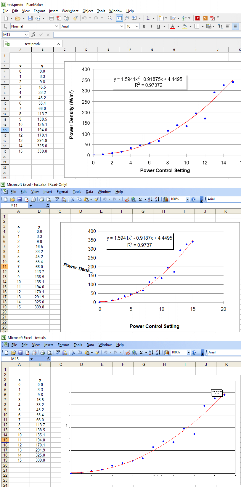 However, if I open the PMDX file on my PlanMaker and then save them as XLS and XLSX, the generated files open correctly in Excel 2003.
