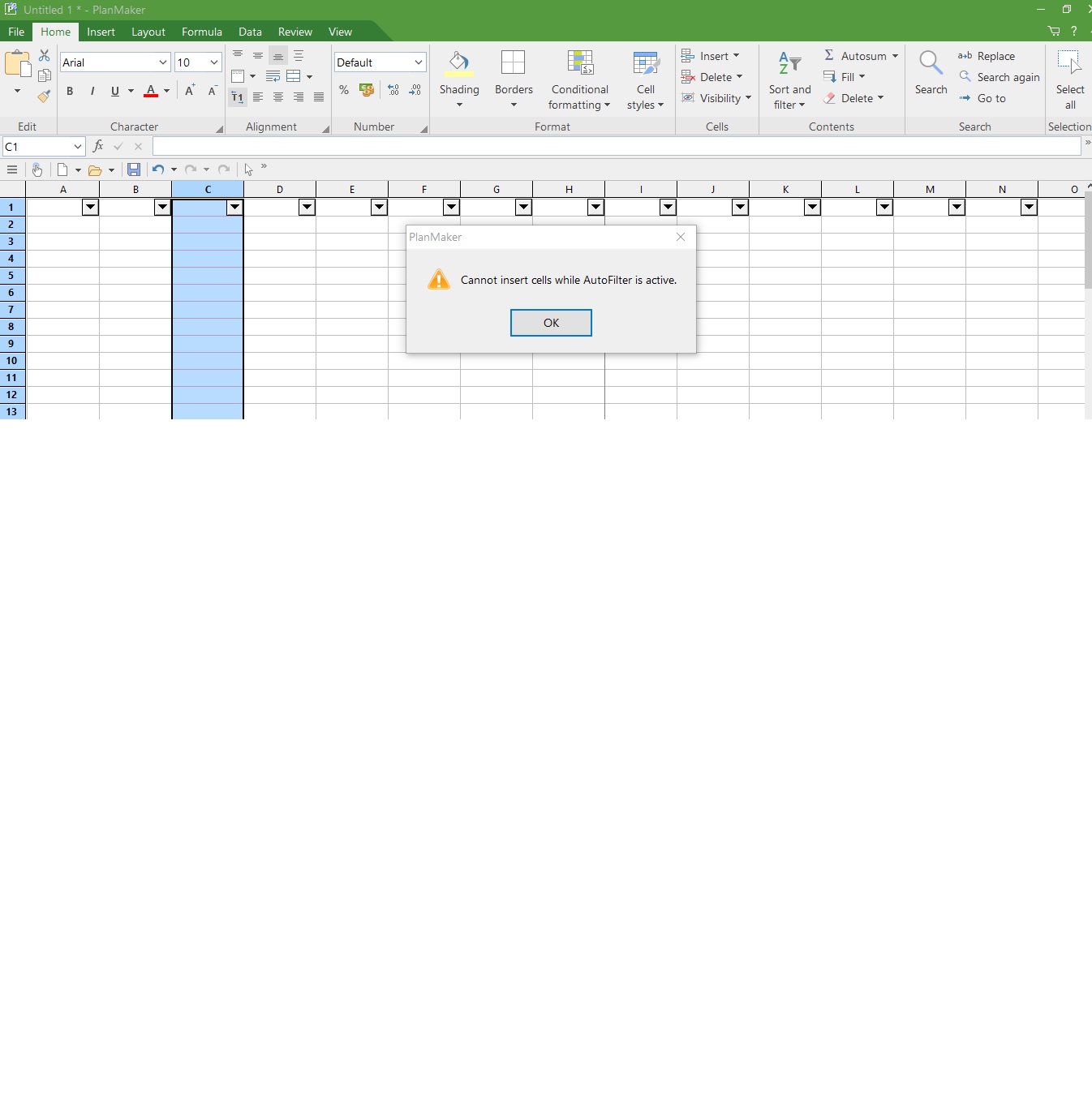 I am Unable to insert a Column in filter mode. Please clarify the same.