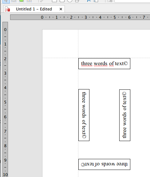 I have TextMaker Professional 2018 on an iMac with OS10.15. How can I rotate (actually, flip) a short line of text (three words and a copyright symbol)?