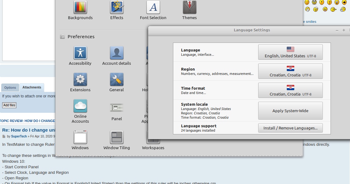 Can you give me a hint how to do this in Linux environment (Mint19). I have toolbars (and all other units) in inches, but would like to have mm(cm). I am using English as my system language but everything else (time zone, language, region, system locale..) is set to Croatian (see attached screen grab).