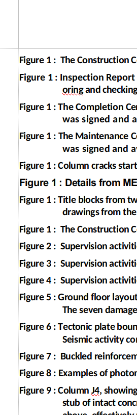 I have tried to correct the numerous repeat captions, 'Figure 1' by deleting those captions and using TM to add new captions to replace them. This has generally worked, with correct caption numbers appearing but I found that the Table of Figures was still completely messed up iith many 'Figure 1' entries - including the ones for which I had re-done the captions. Then, as soon as I have updated teh Table of Figures, the result has been no change for the Contents - Table of Figures still defective, but the Figures themselves, the bad ones, have all changed back to 'Figure 1' as well.