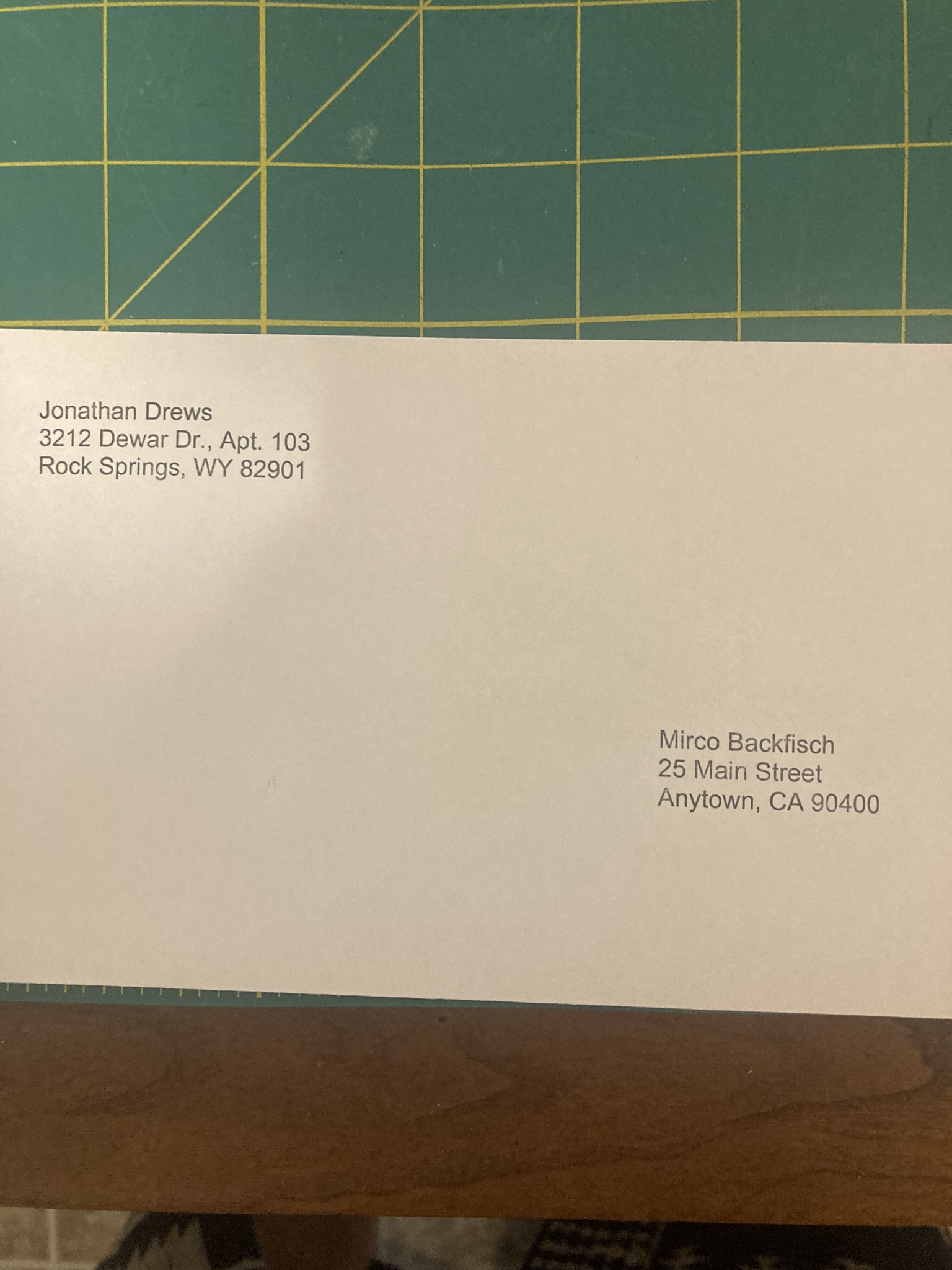 Select Mailings -> Envelope and print an envelope using the correct size. The orientation and alignment are not correct.
