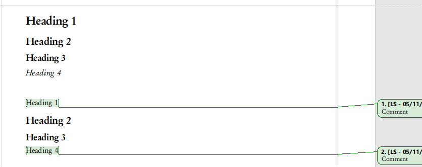 1. Screenshot showing styled text without comments and with comments rendered in TM 2024.