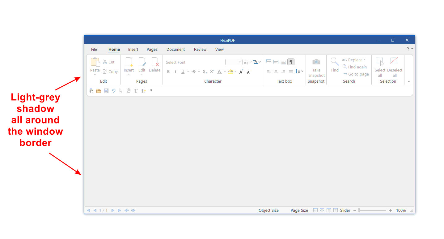 I am testing the new PDF2025 (I will most likely upgrade my PDF2022 to this new version). Around the border of the main window of this software there is a shadow. How do I get rid of this shadow, so that I get a sharp border for the window? I tried the File / Options, but I don't see an option for a shadowless window.