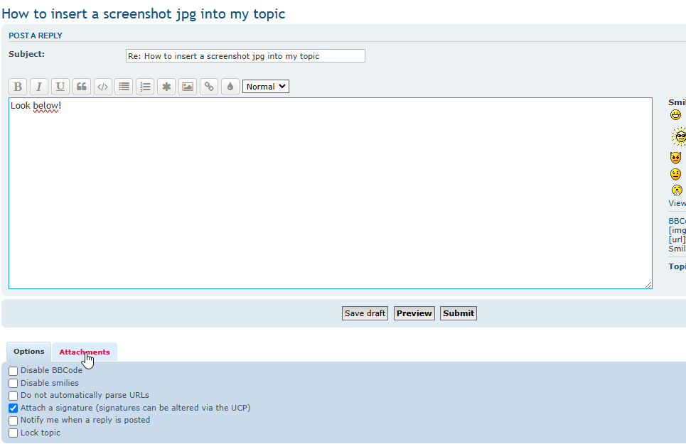Re: How to insert a screenshot jpg into my topic