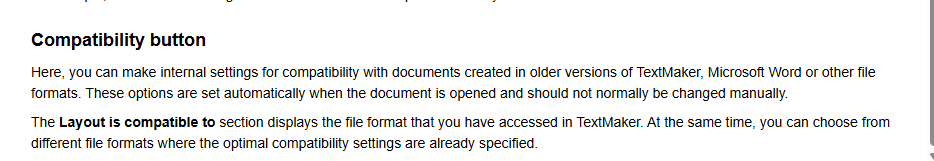 Also, if I select the "Do not show this warning again" box, will TextMaker default in future to applying the compatibility settings or to not appying them? Or will it simply default to applying them if I select "Yes" and to not applying them if I select "No"?