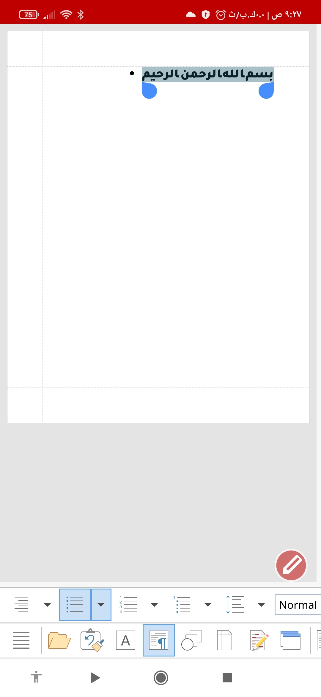 3. Please select the appropriate font which supports Arabic language. If there is none, then please download and install one. After selecting Arabic supported font, you will be able to type.