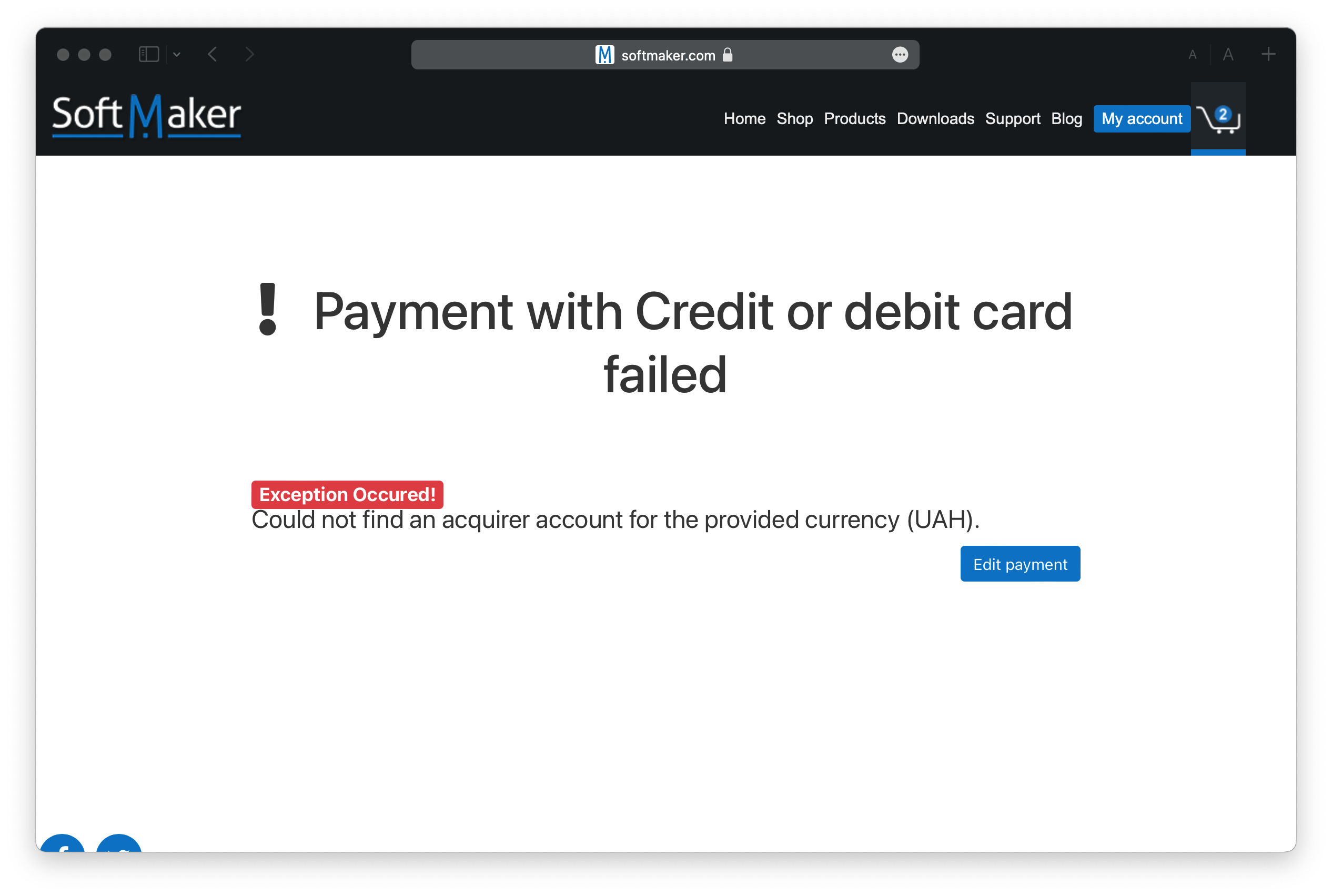 The currency to pay switched to UAH and the error occurs while I'm trying to pay using Russian rouble card.