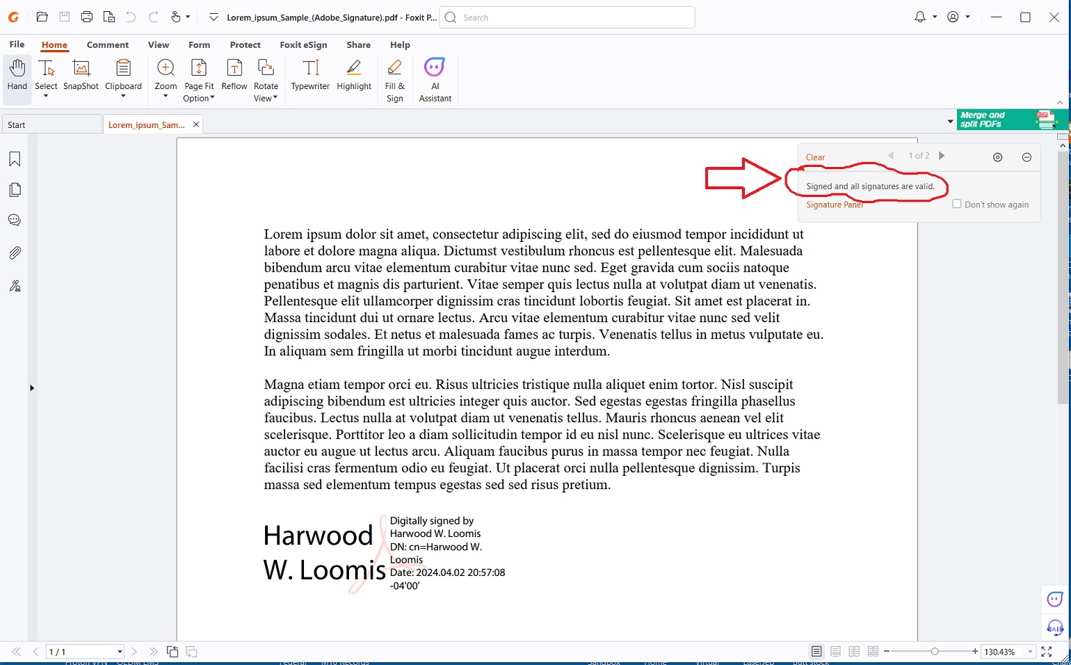 There you'll be able to see the signatures on the file, but FlexiPDF immediately invalidates the certificate because it is an editor.