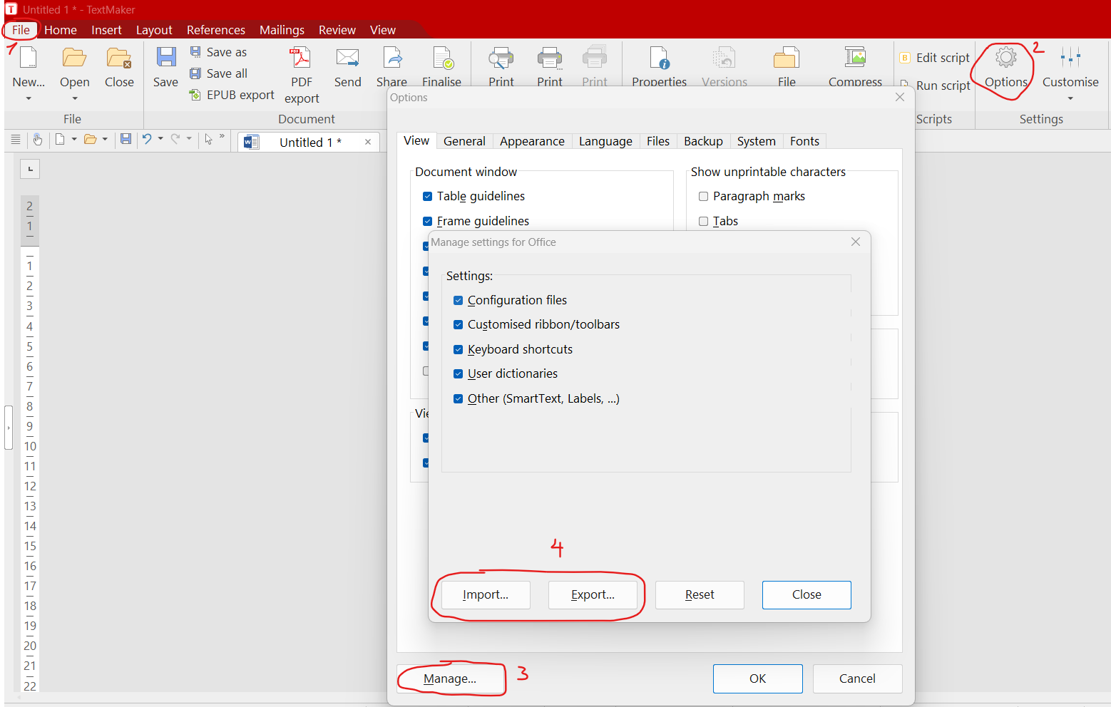 User configuration files and toolbar configuration files normally are stored in the folder C:\Users\<UserProfile>\Documents\SoftMaker\Settings